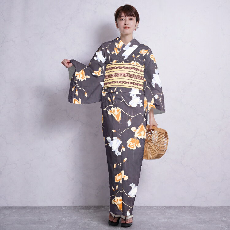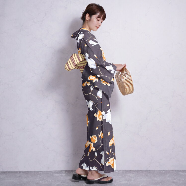 浴衣 セット レディース 浴衣 3点セット(浴衣/帯/下駄)紫 白 ベージュ オレンジ グレー 木蓮 ニコアンティーク Nico Antique 浴衣セット ゆかた 女性 レトロLサイズ トールサイズ 大きいサイズ